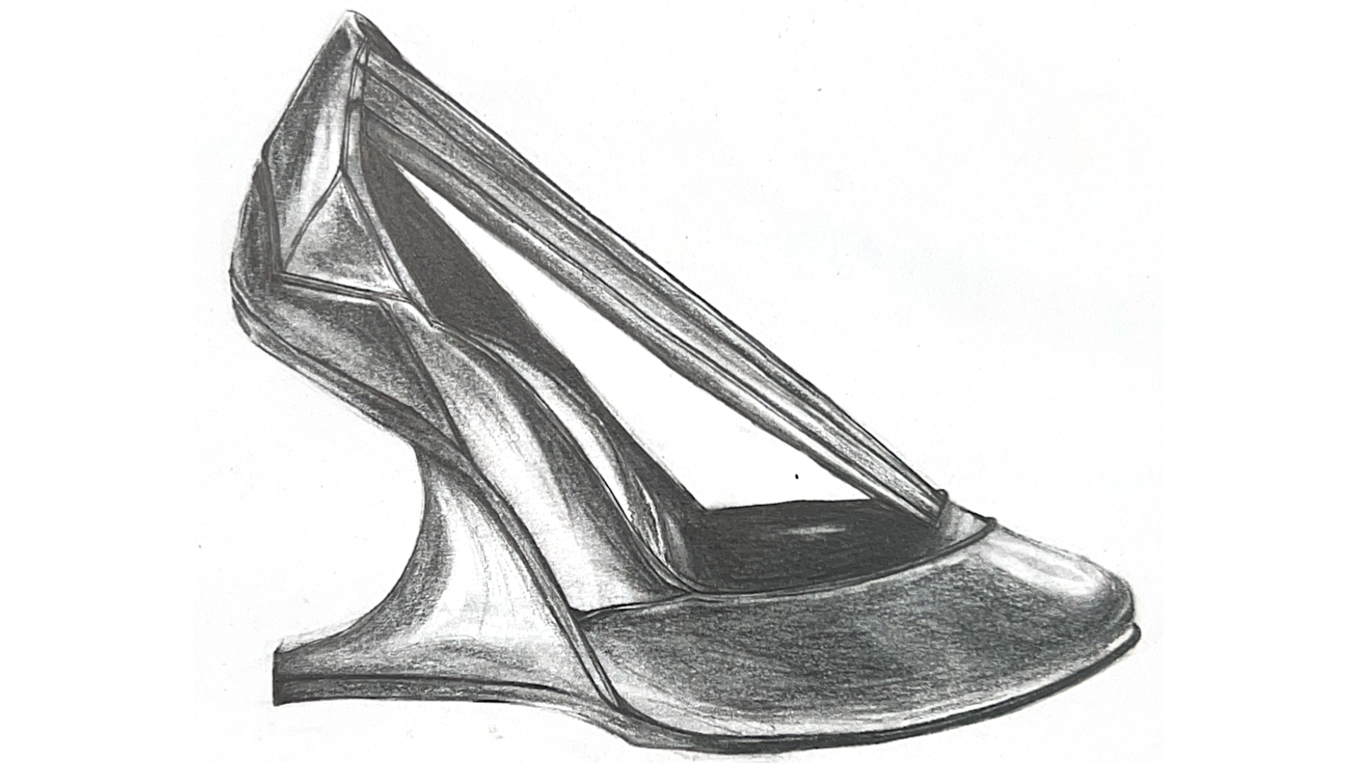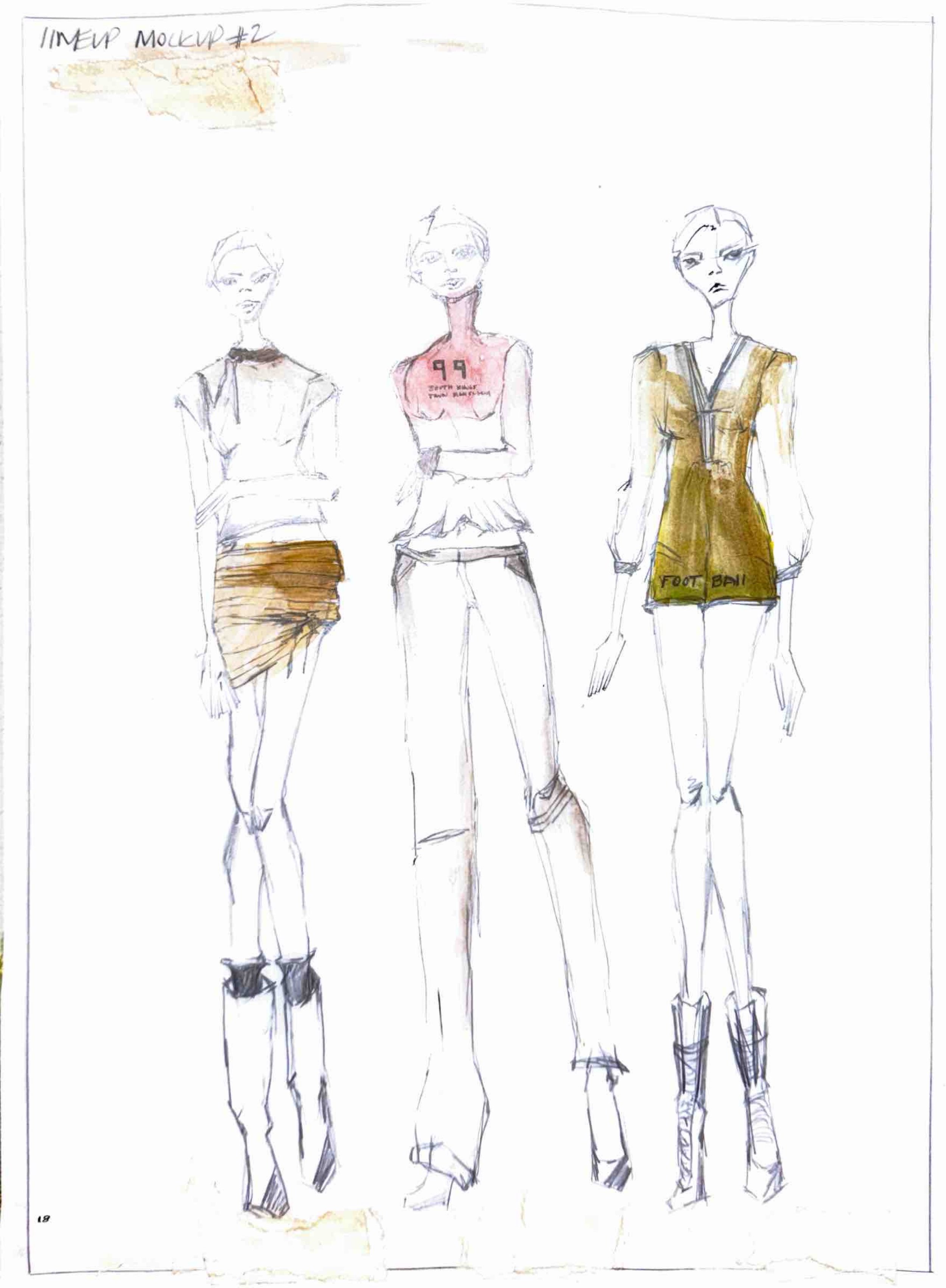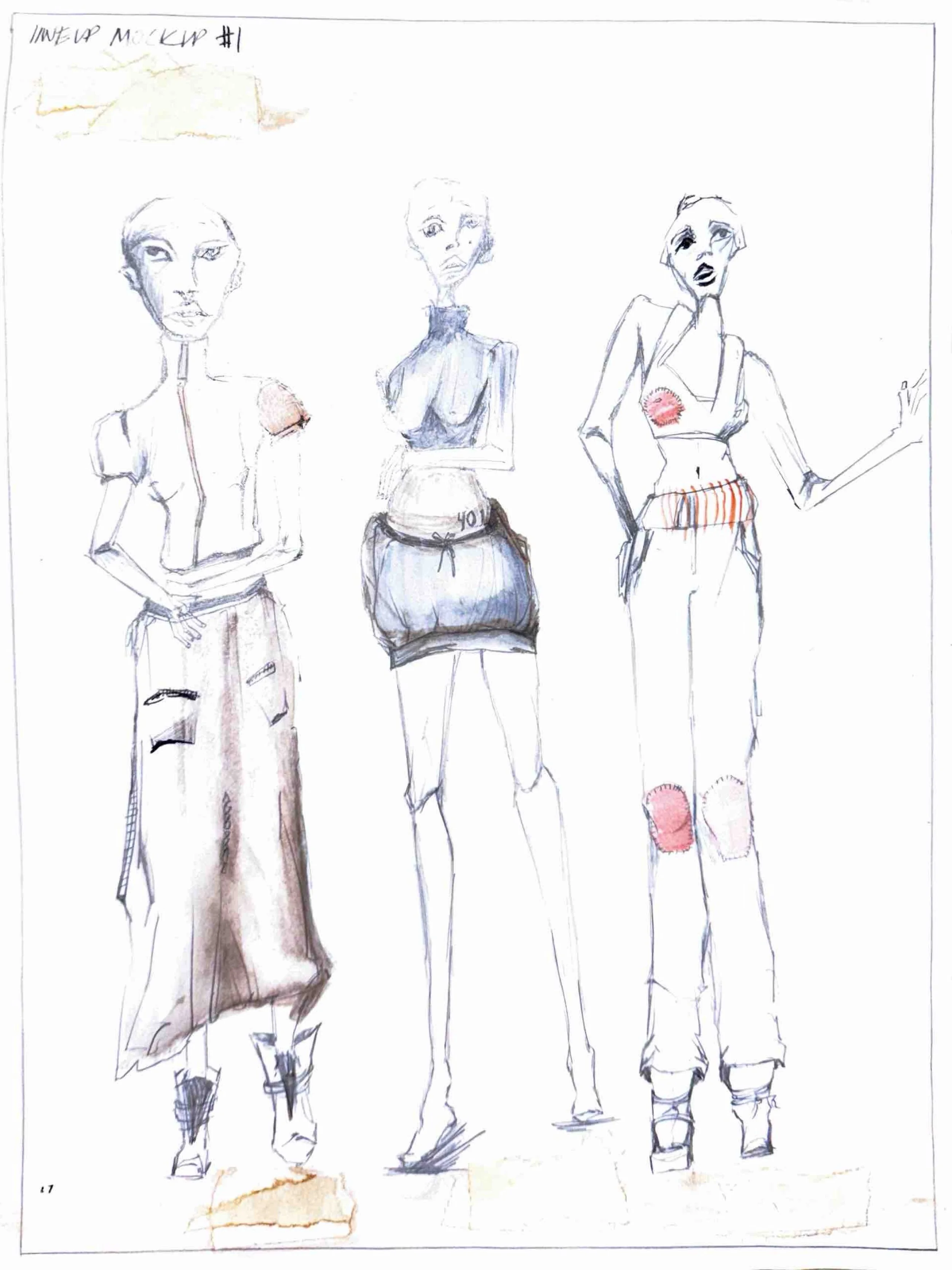 The act of drawing becomes a space for problem-solving and discovery: silhouettes are stretched, weight is redistributed, and materials are imagined through texture and tone rather than rendered as fixed outcomes.