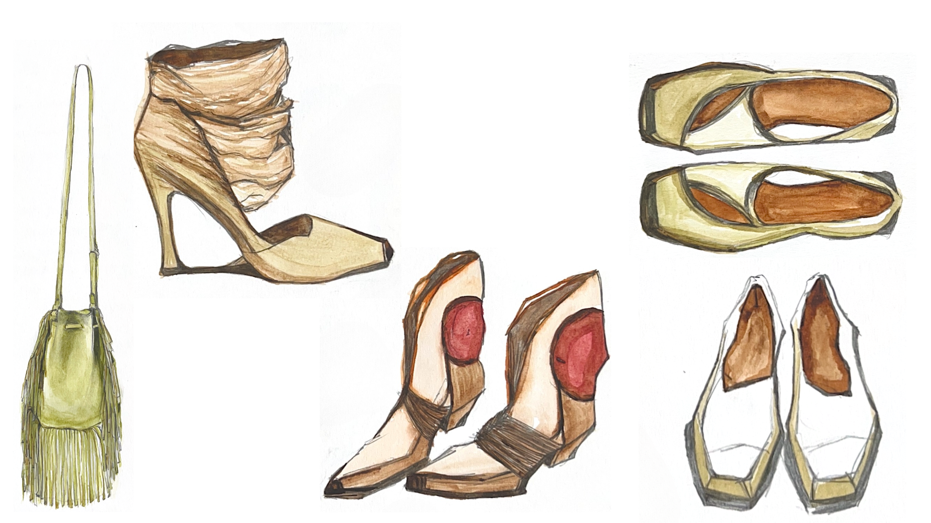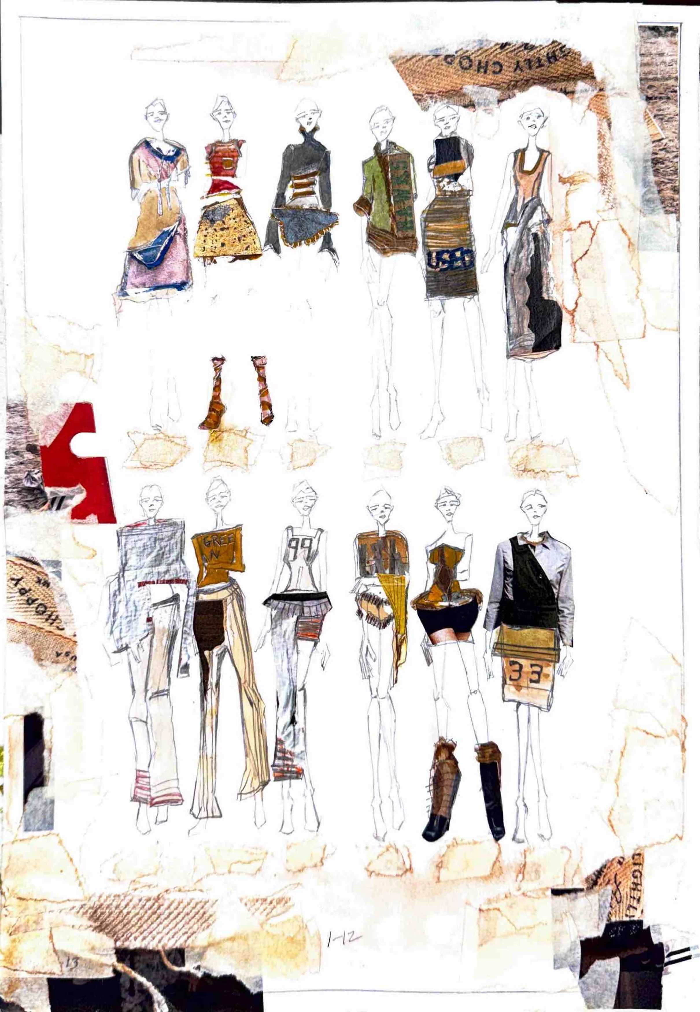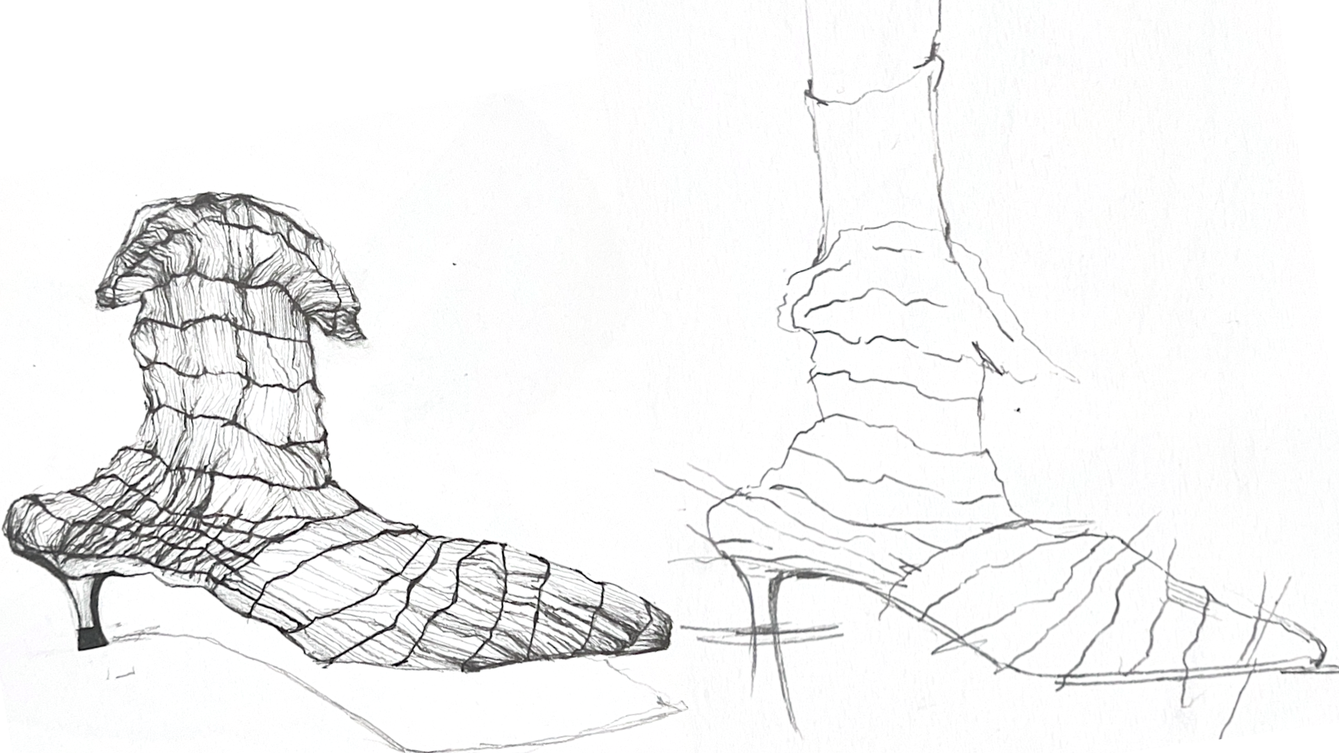 The act of drawing becomes a space for problem-solving and discovery: silhouettes are stretched, weight is redistributed, and materials are imagined through texture and tone rather than rendered as fixed outcomes.